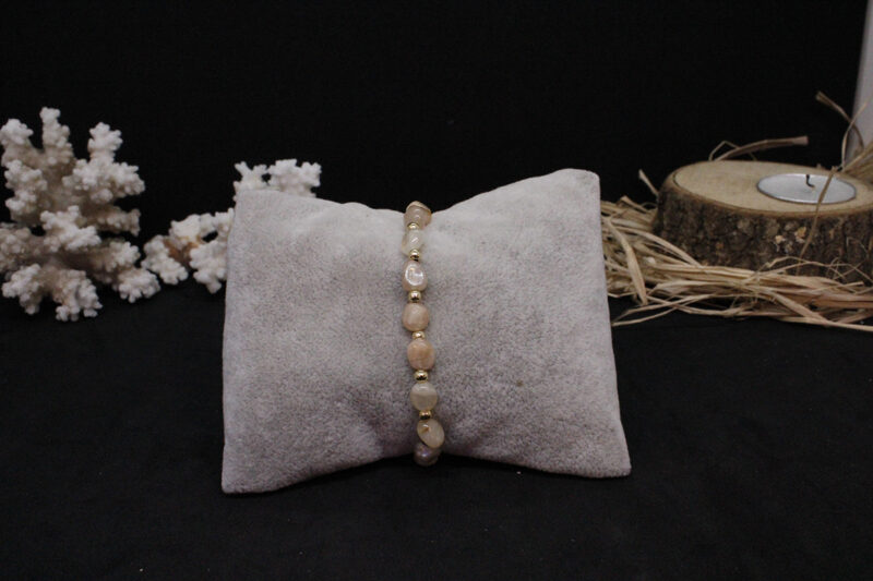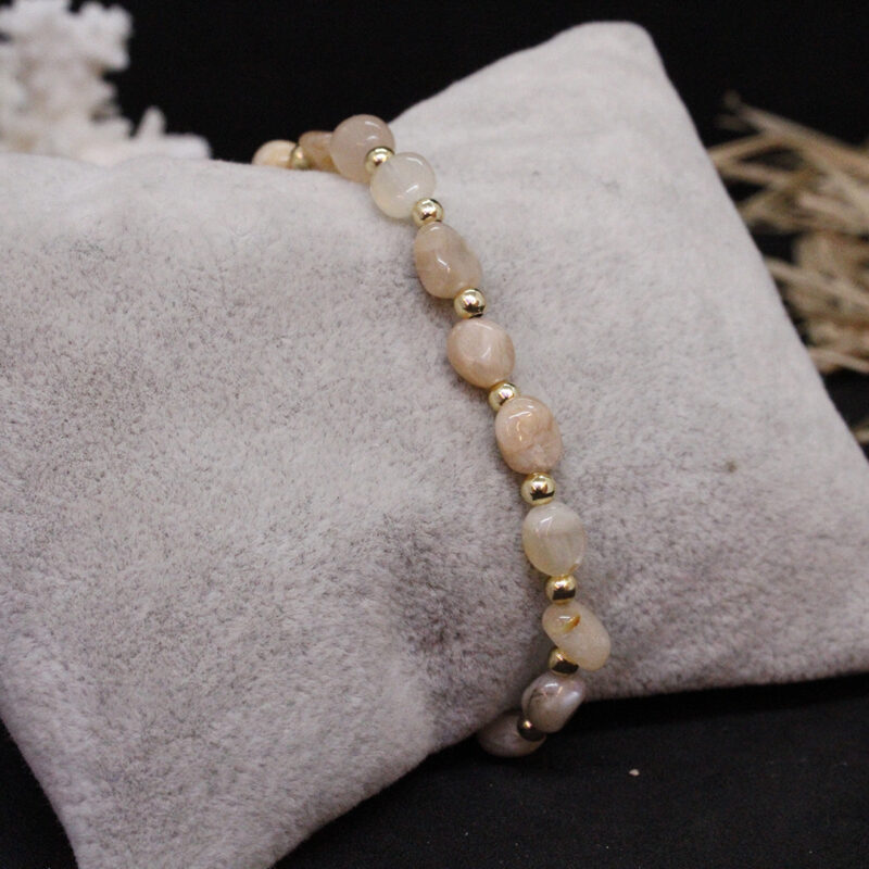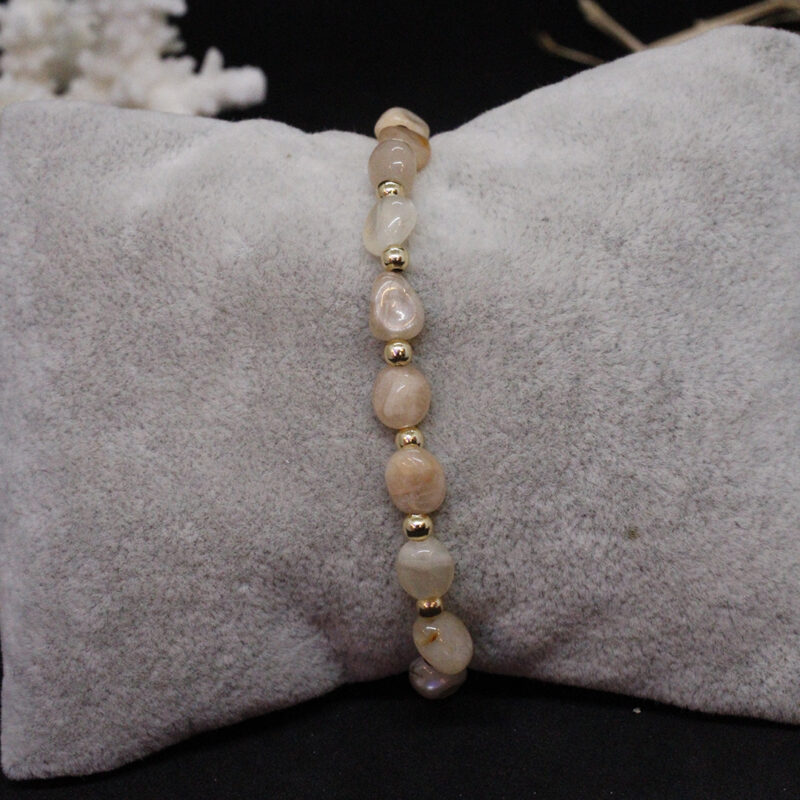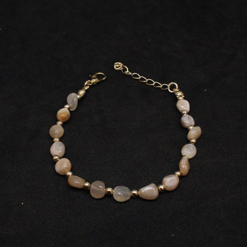 Bilekliğin altın rengi tasarımı, güneş taşı ile mükemmel bir uyum içerisindedir. Altın rengi bileklik her kıyafetle kolayca kombinlenebilir. Şıklığı ve doğallığı bir arada sunar.