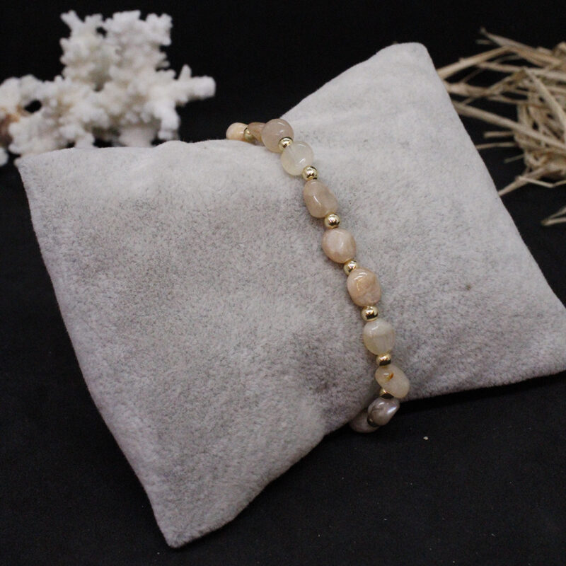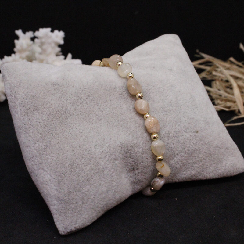 Güneş taşı, doğanın en güzel yaratımlarından biridir. Kendine özgü parlaklığı ve renkleri ile insanları büyüler. Bilekliğimizin ana taşı da güneş taşıdır ve doğal güzelliği ile ön plana çıkar.