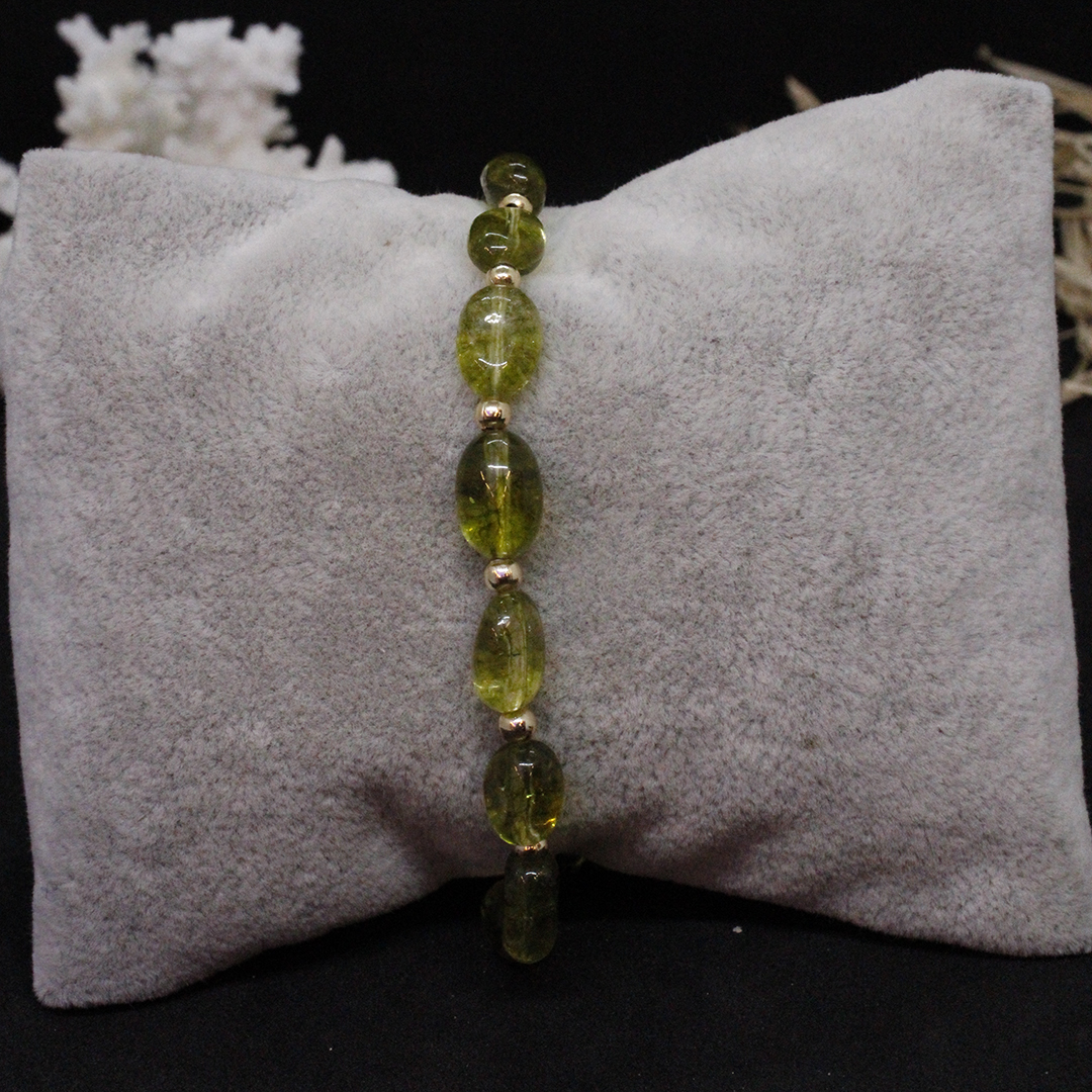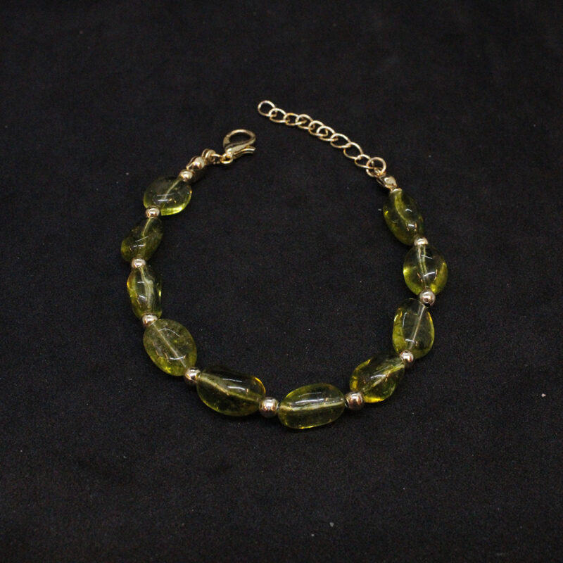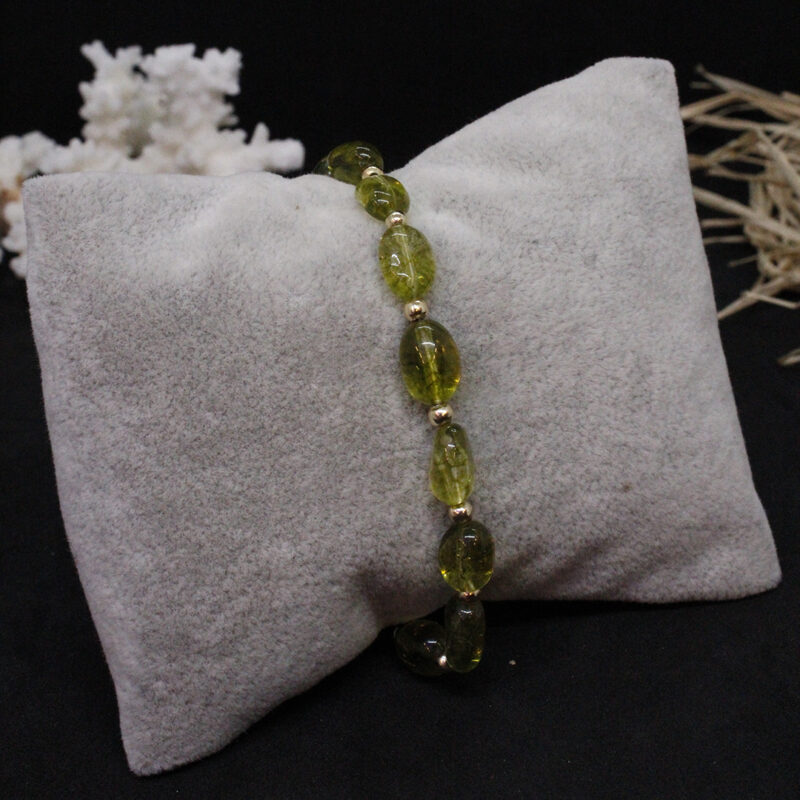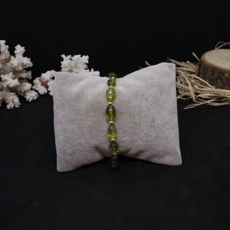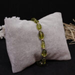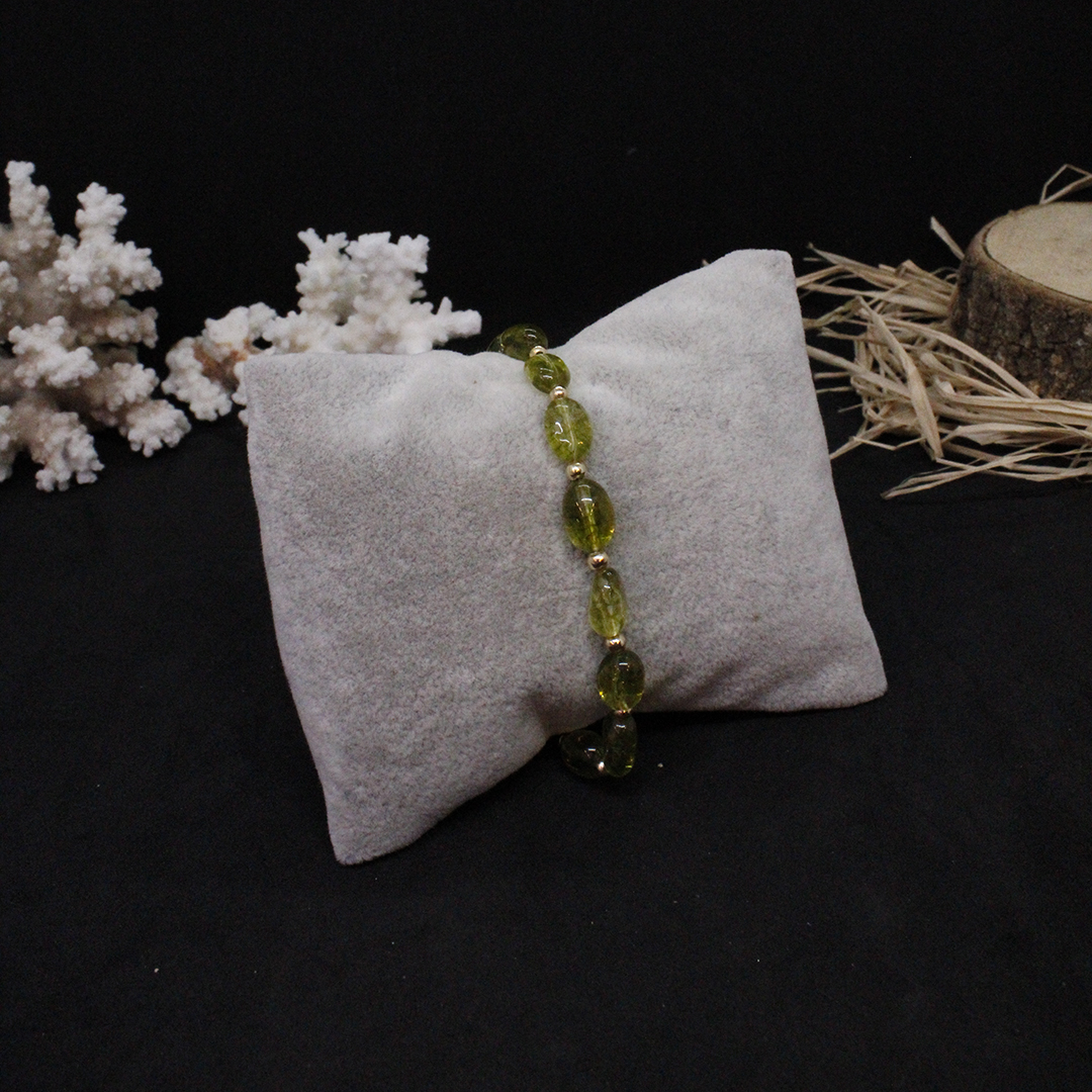 Peridot taşı, doğanın güzelliklerinden biridir. Bu bileklik, doğal taşın estetik güzelliği ile meşhur olan peridot taşından yapılmıştır. Yeşil rengi, sakinlik ve huzur verir. Bileklik, zarif ve şık bir tasarıma sahiptir ve herhangi bir kıyafeti tamamlar.