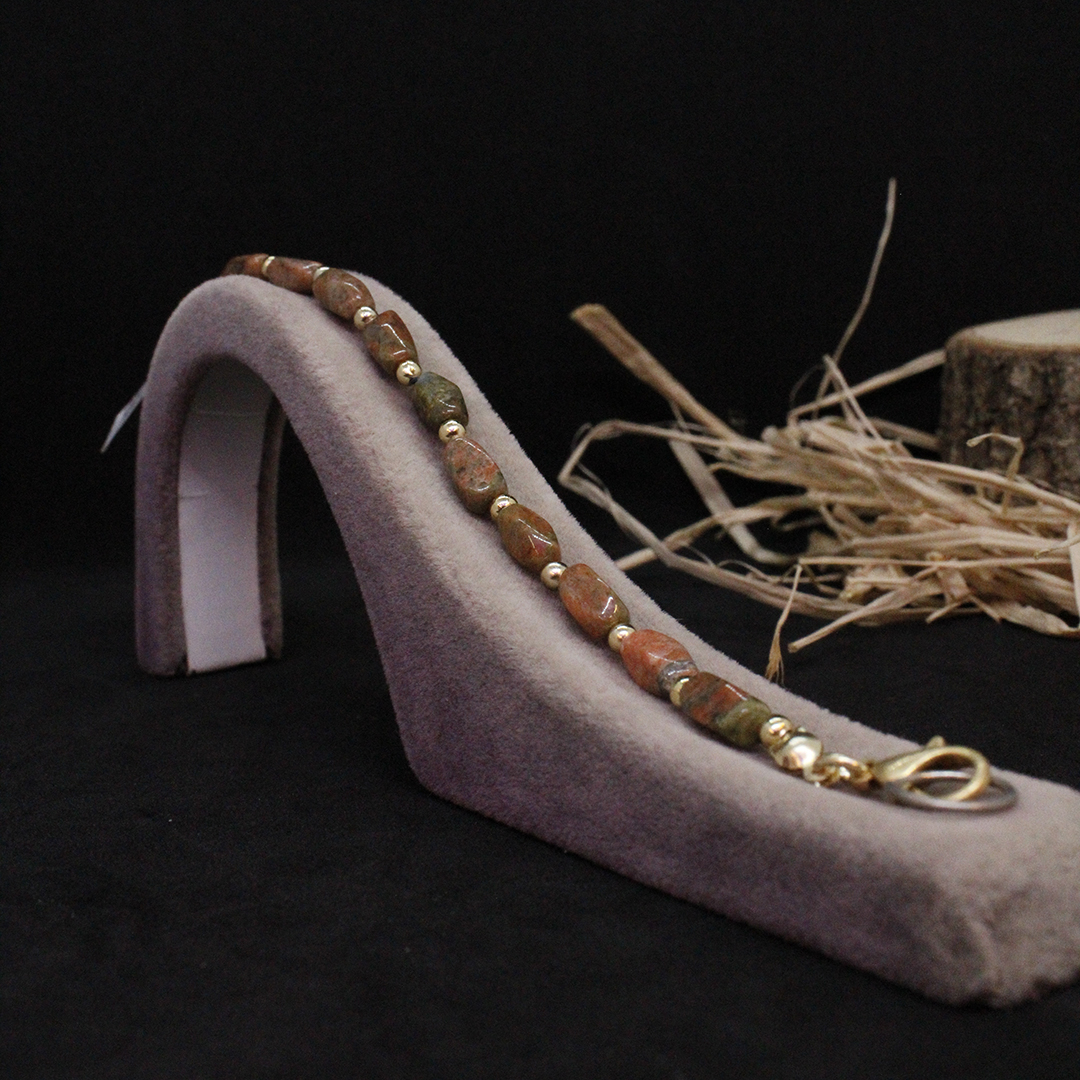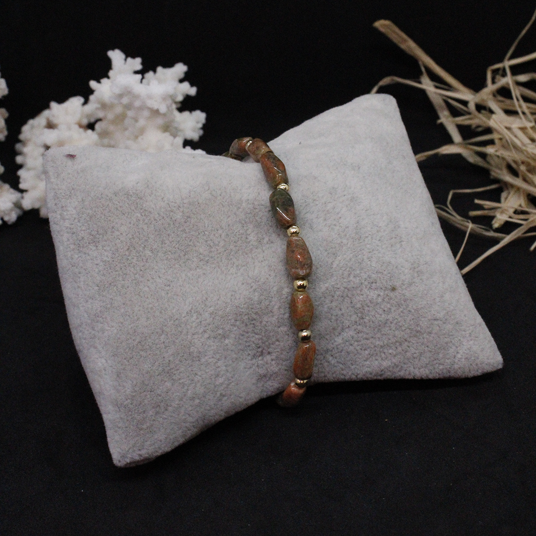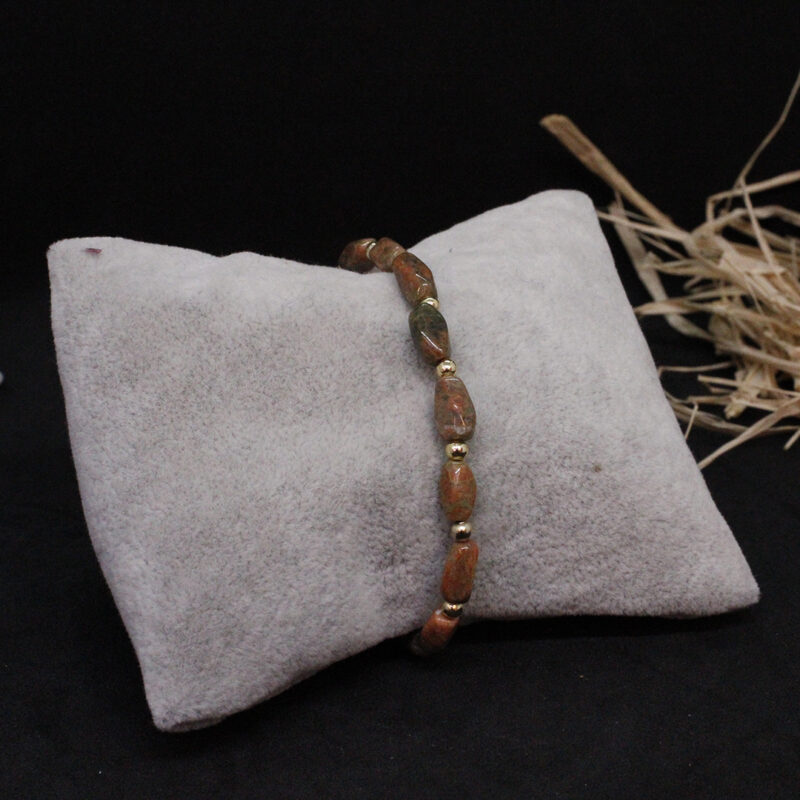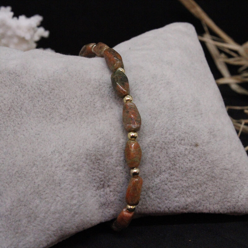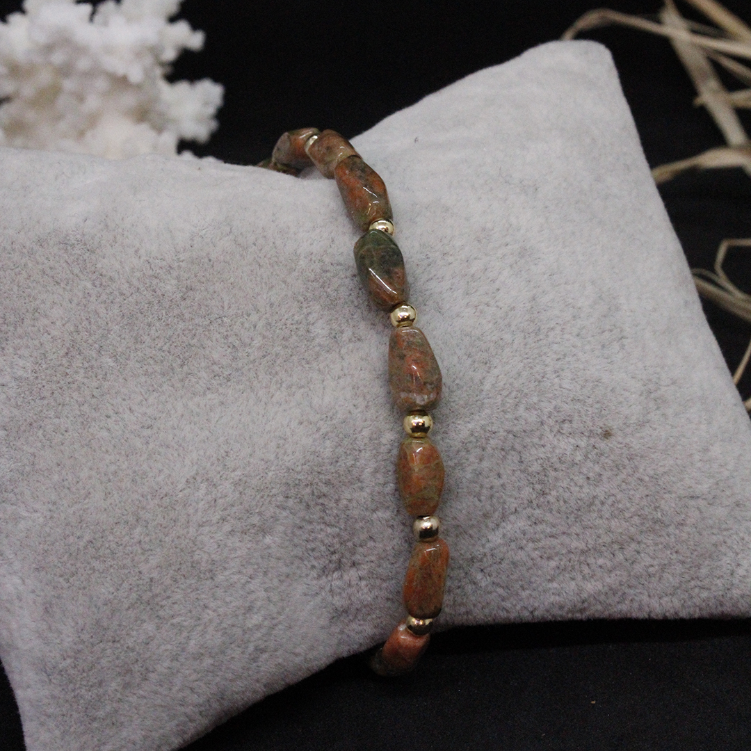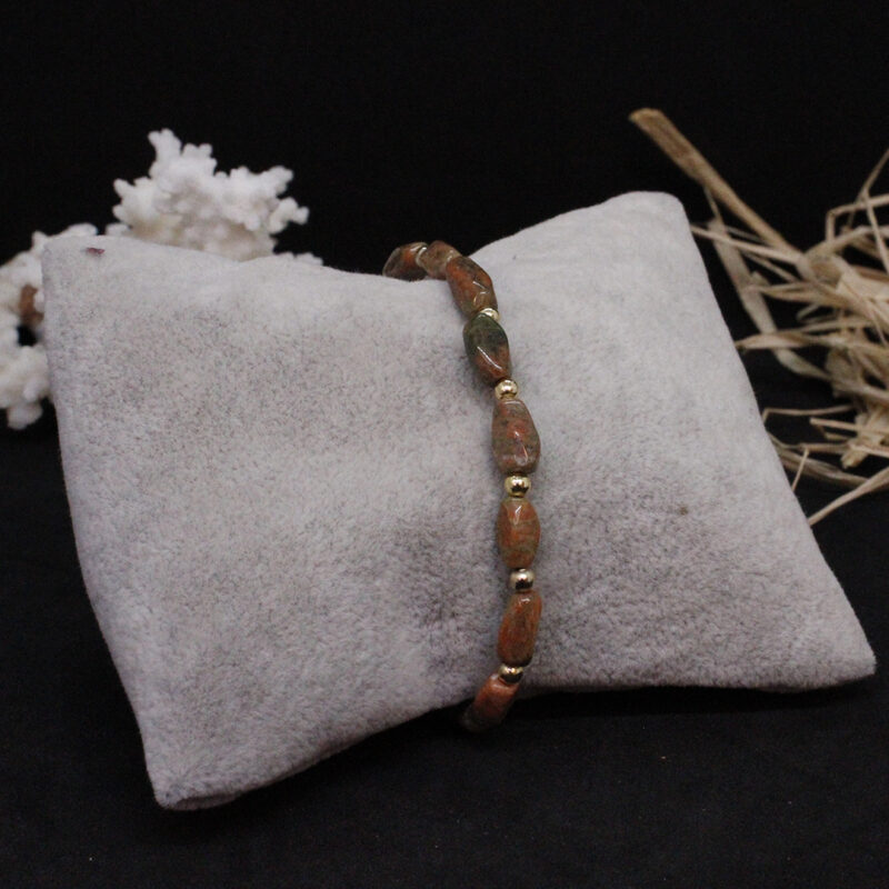 Unakit bileklik, doğal taşların sunduğu özel enerjiyi keşfetmek isteyenler için tasarlandı. Unakit, kalp çakrasını açar ve kişinin kendine olan sevgi ve saygısını arttırır. Taşın renkleri, doğanın güzelliğiyle uyum içindedir ve bileklik, stilinize zarif bir dokunuş katar.