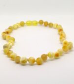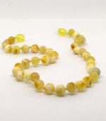Kehribar bebekler için kolye, bileklik yada ayak bileğinde halhal olarak kullanılabilir. En uygunu boğaz bölgesine yakın olduğu için kolye olarak kullanılmasıdır.