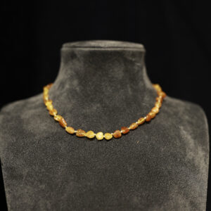 Kehribar bebekler için kolye, bileklik yada ayak bileğinde halhal olarak kullanılabilir. En uygunu boğaz bölgesine yakın olduğu için kolye olarak kullanılmasıdır.