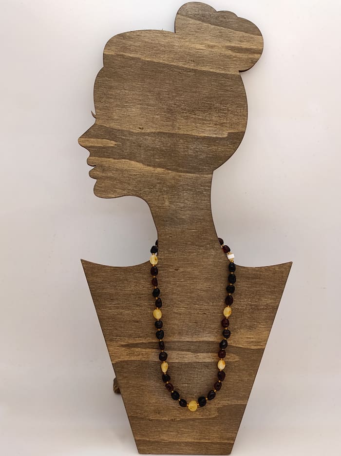 Kehribar bebekler için kolye, bileklik yada ayak bileğinde halhal olarak kullanılabilir. En uygunu boğaz bölgesine yakın olduğu için kolye olarak kullanılmasıdır.