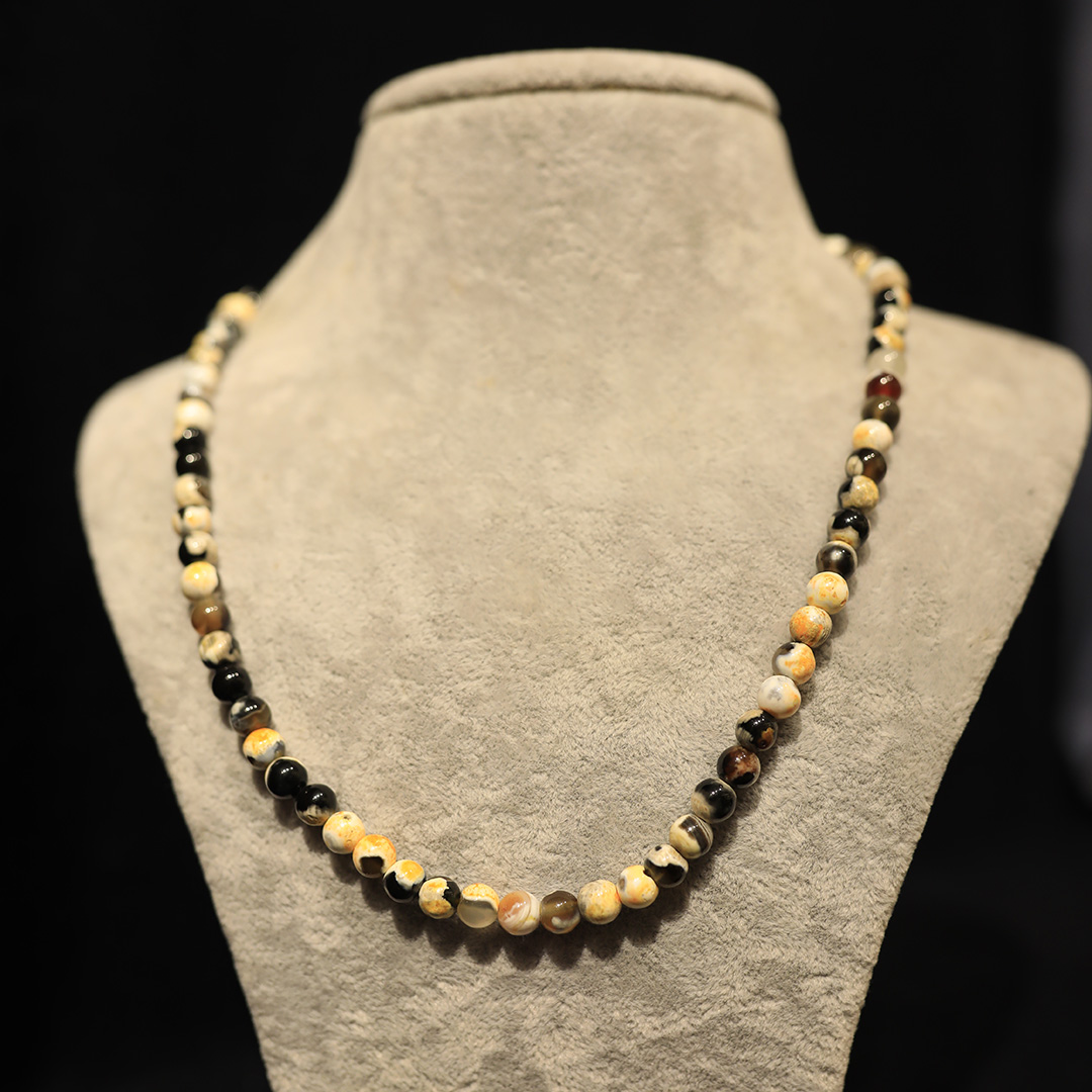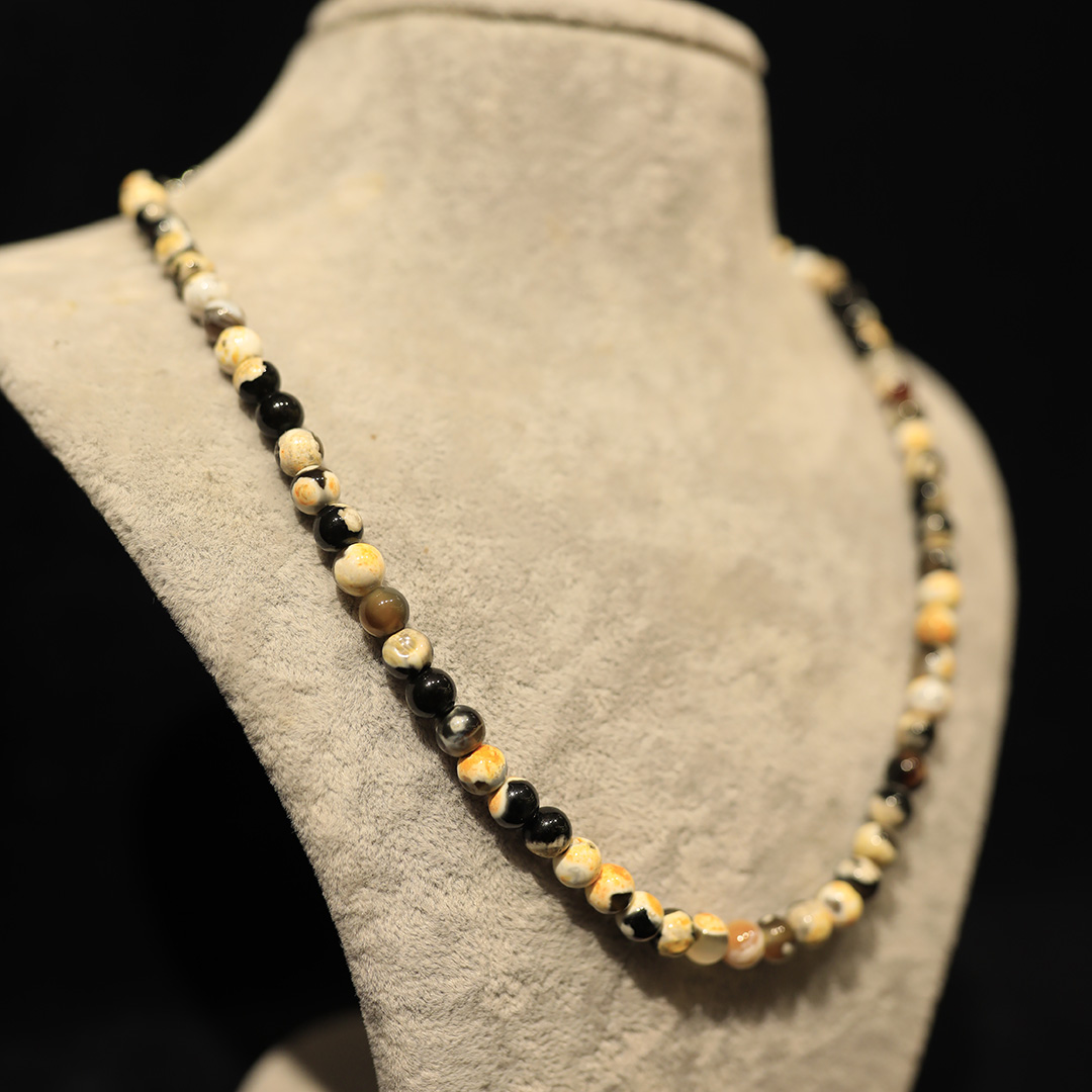 Güneşin sıcak tonlarını taşıyan sarı akik taşı, pozitif enerji ve neşe kaynağı olarak öne çıkar. 🌞 6mm faset kesim taşları, ışığı her açıdan yansıtarak kolyeye zarif ve göz alıcı bir görünüm kazandırır.