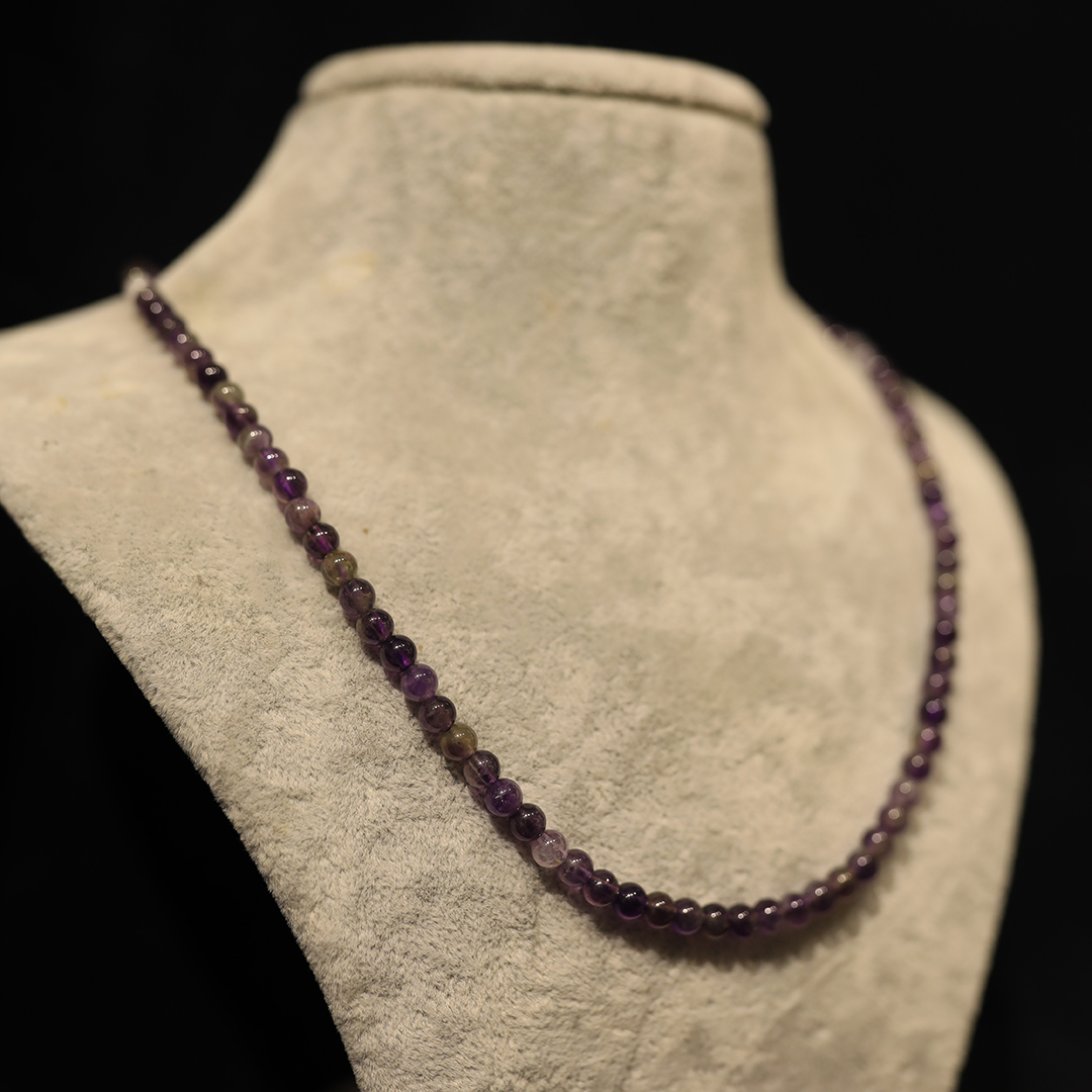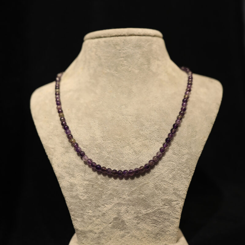 Ametist, mor rengiyle tanınan değerli bir kristaldir. Ayrıca bu taş, binlerce yıldır farklı kültürlerde kullanılmaktadır. Bununla birlikte şifa özellikleri de oldukça popülerdir. 5mm boyutundaki ametist taneleri, kolyede ideal bir görünüm sağlar.