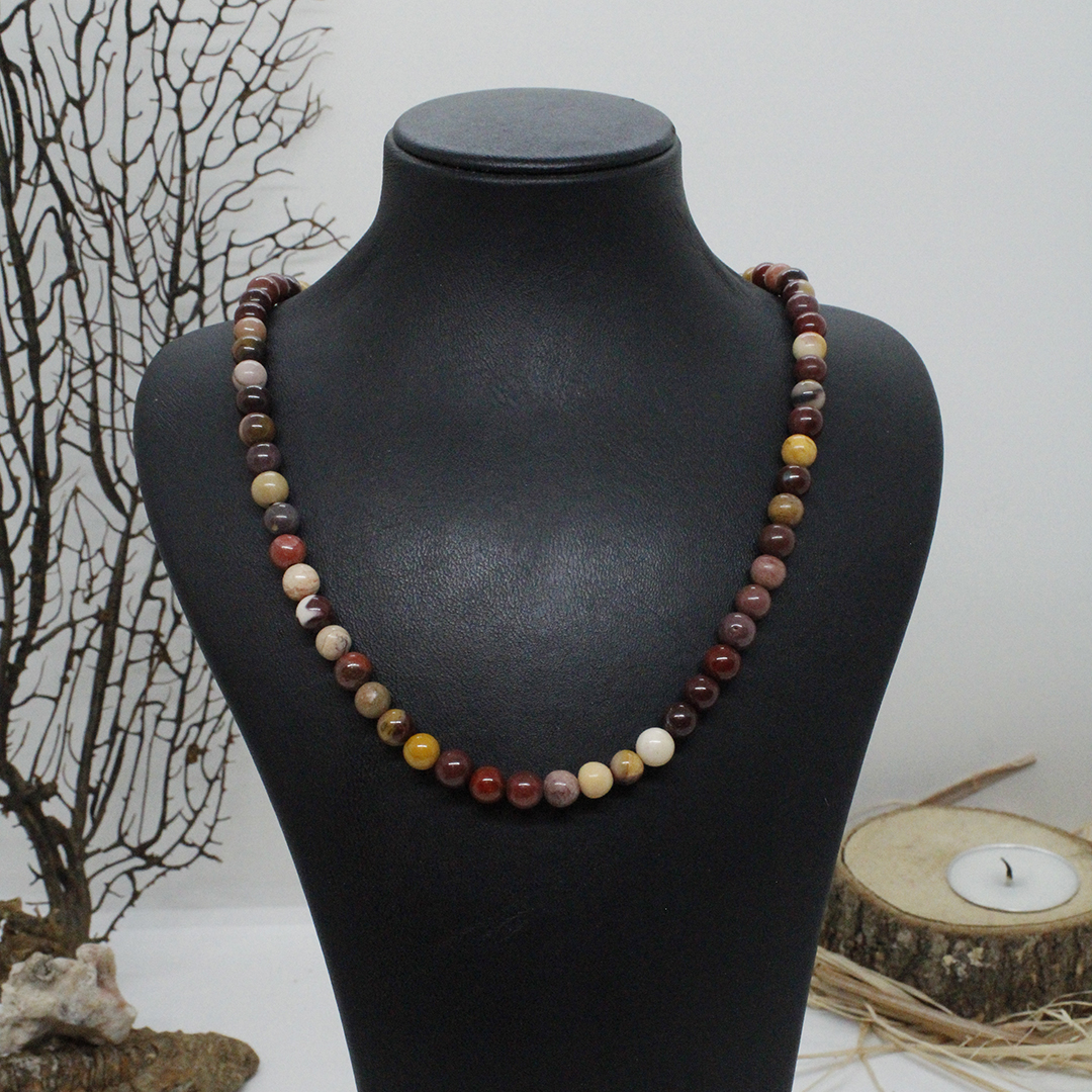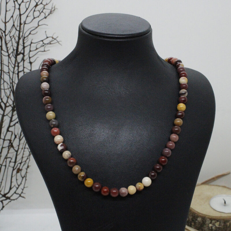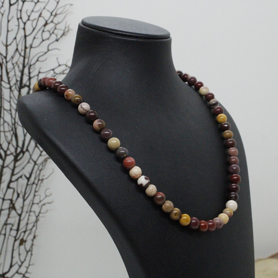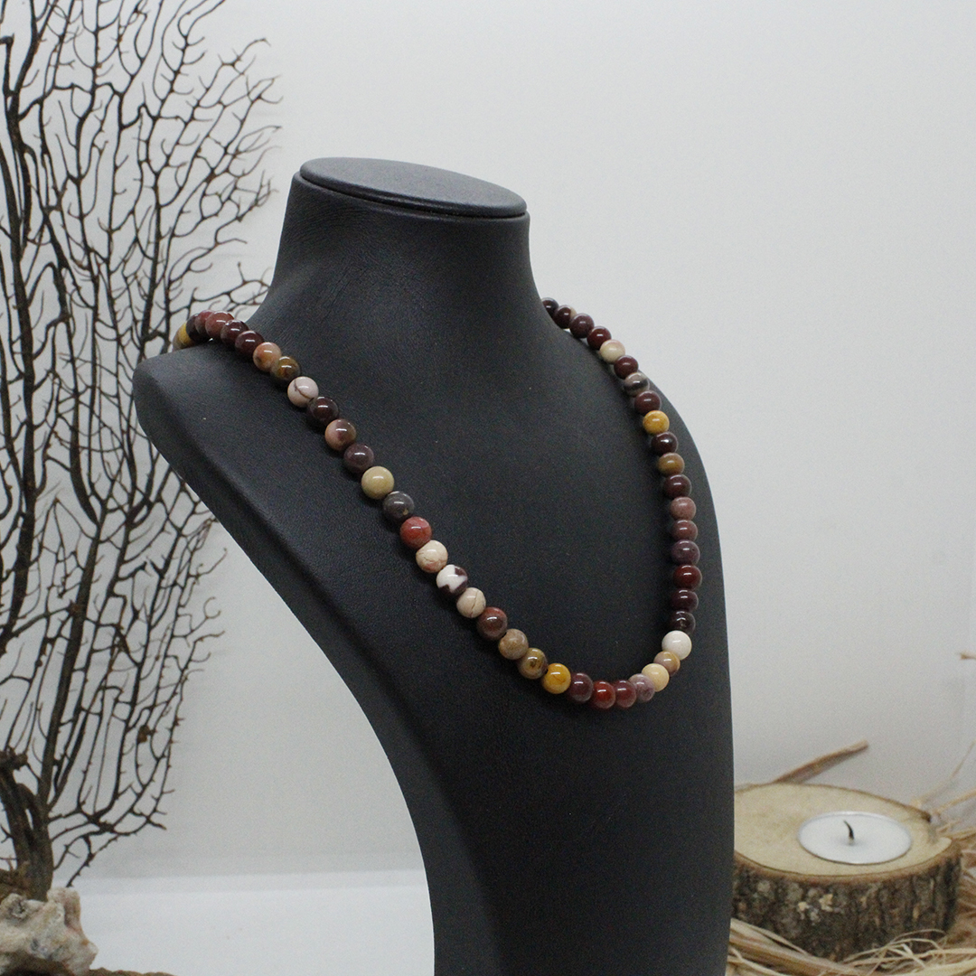 - Kolyenin her bir taşı, benzersiz bir renk ve desene sahiptir.