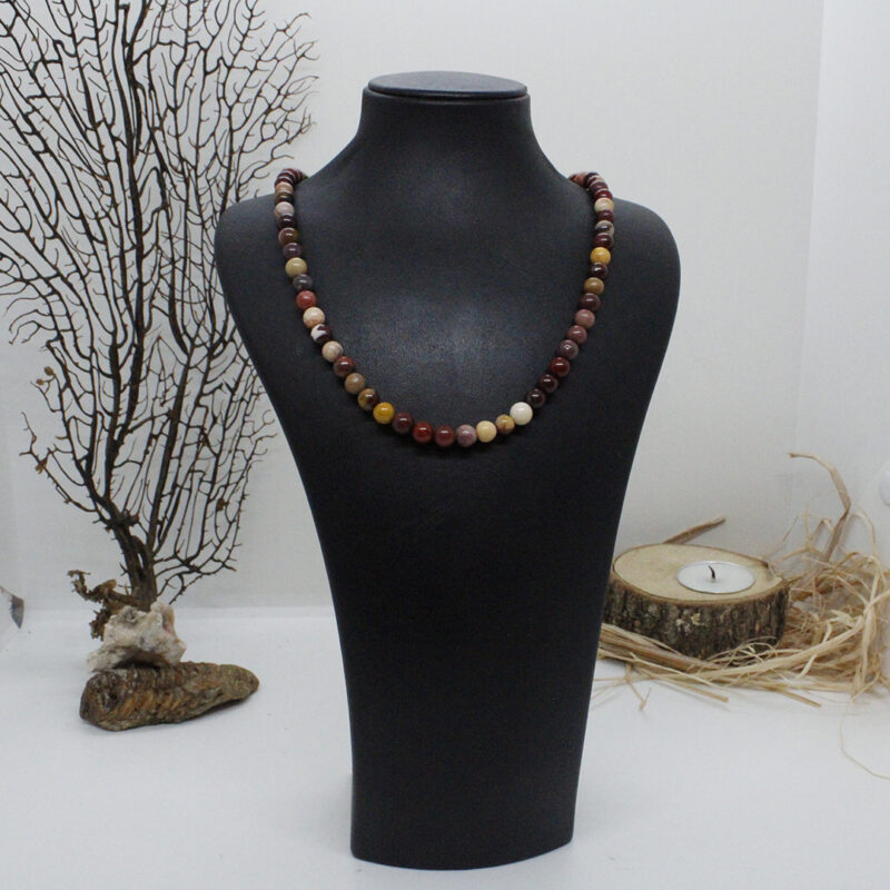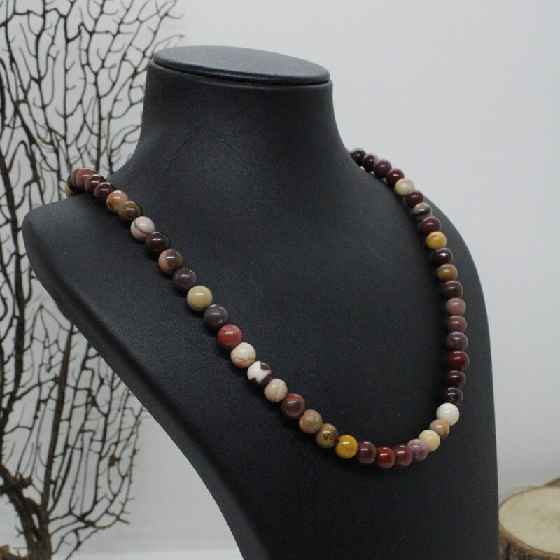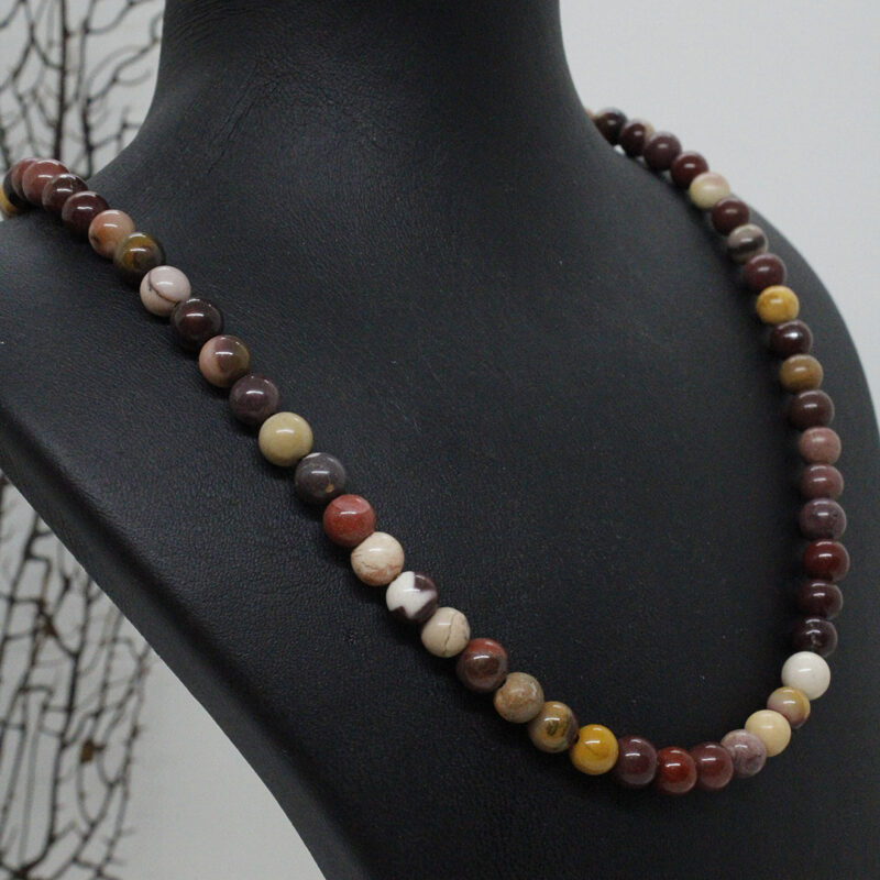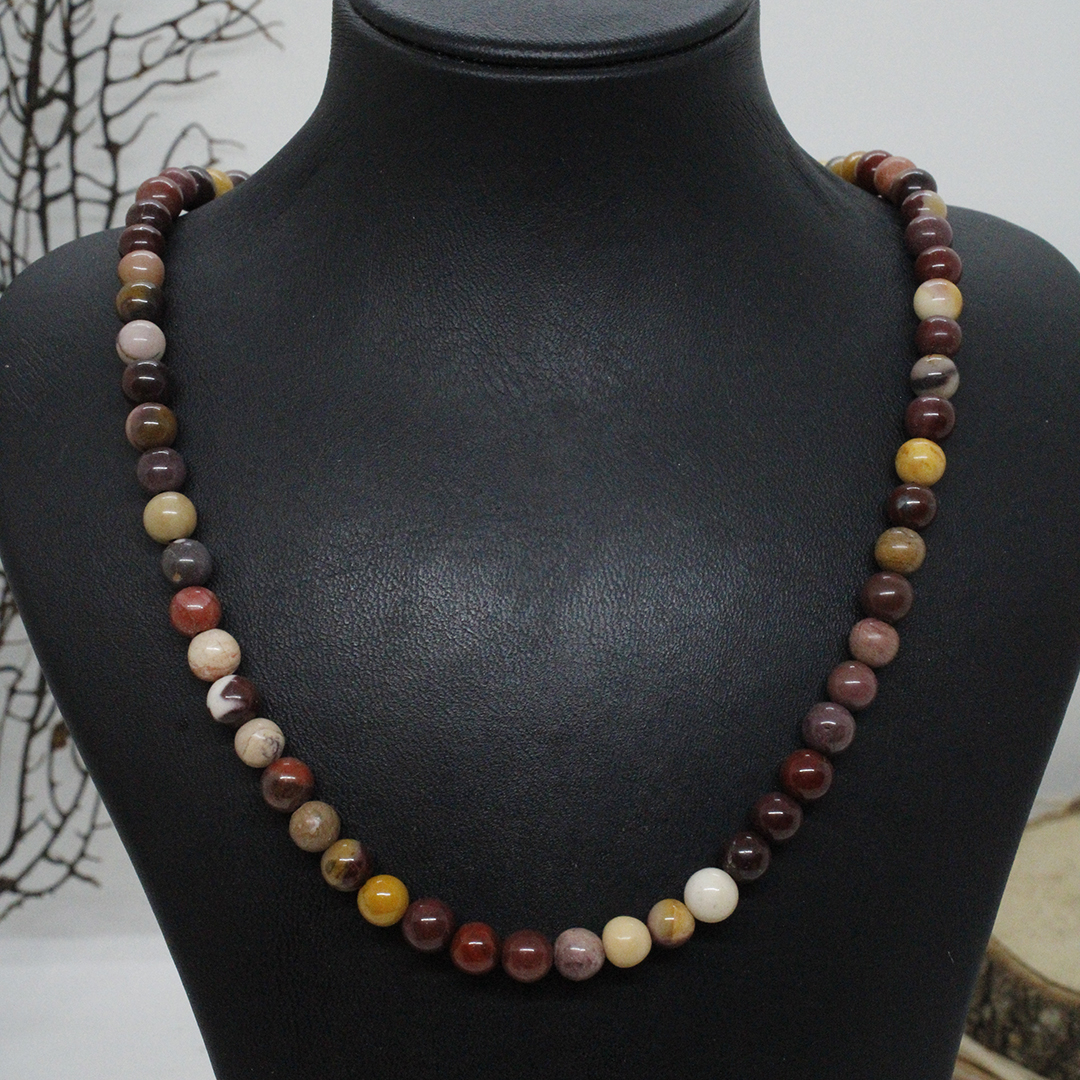 - Kolyenin her bir taşı, benzersiz bir renk ve desene sahiptir.