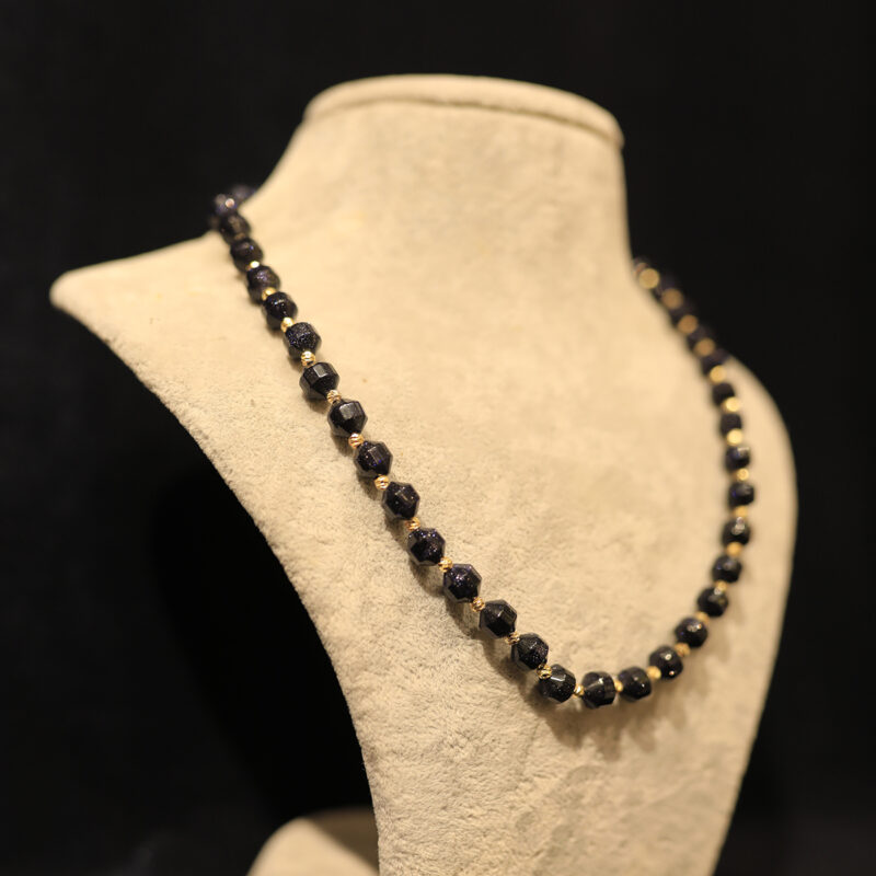 Bu eşsiz Lacivert Yıldız Taşı Köşeli Kesim Kolye ile karanlık bir gökyüzü üzerindeki binlerce yıldızın ışıltısını boynunuza taşıyın. Koyu lacivert zemini üzerinde parlayan bakır pırıltılarıyla benzersiz bir görünüme sahip olan bu taş, Köşeli (fasetli) kesim sayesinde ışığı daha dramatik bir şekilde yansıtarak göz kamaştırıcı bir etki yaratır.