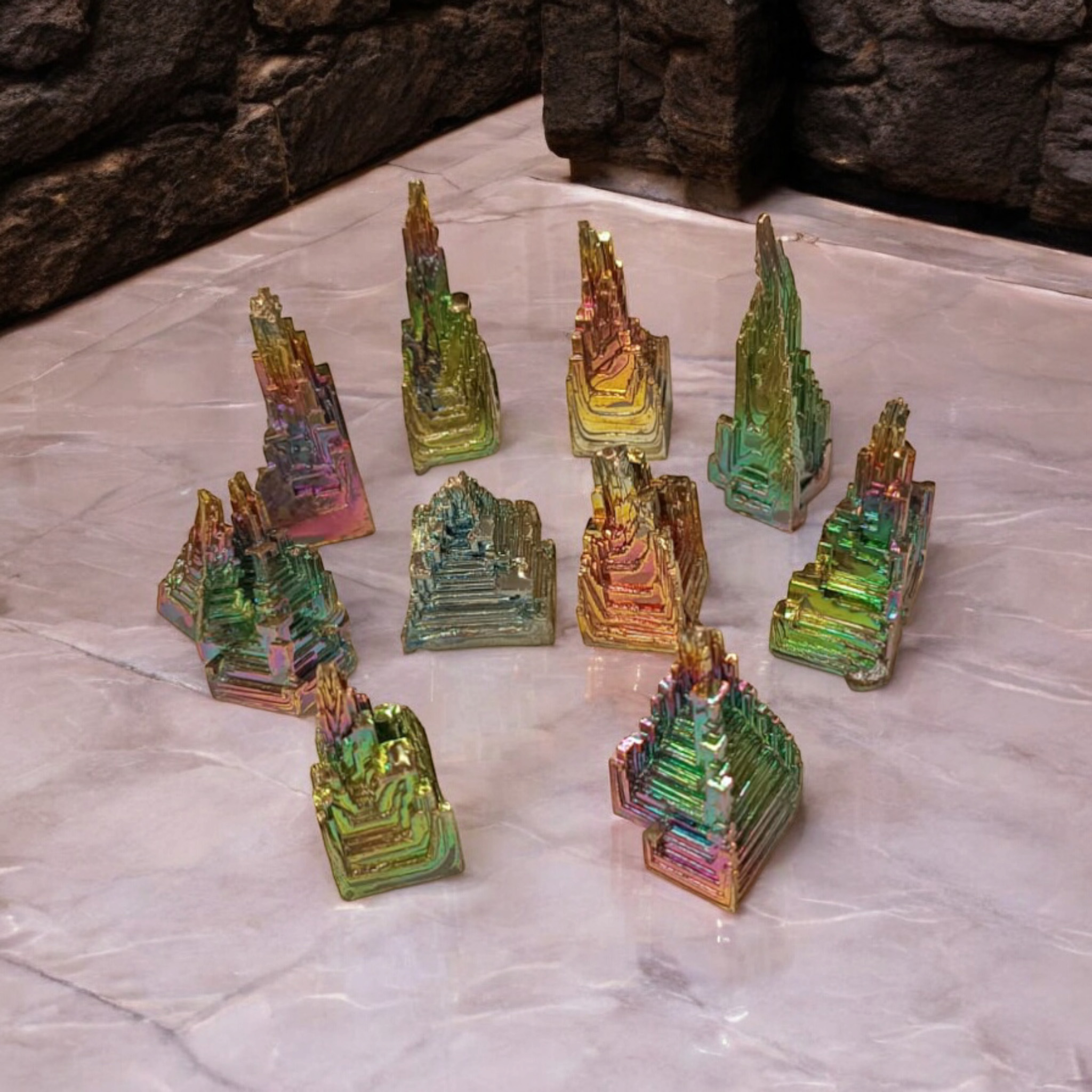 - Dekoratif Kristaller: Bizmutun oksitlenme sonrası oluşan renkli kristal yapıları, süs eşyası ve koleksiyon parçaları olarak popülerdir. Doğal gökkuşağı renkleri, metalin çekiciliğini artırır.