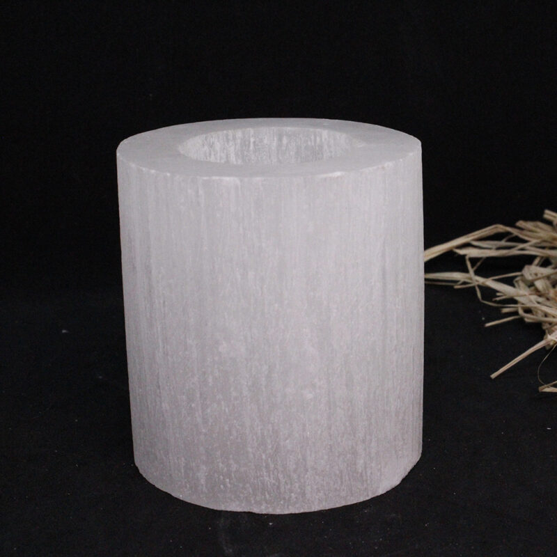 Selenit mumluk, doğal kristal yapıya sahip olduğundan her biri eşsiz bir tasarıma sahiptir. Her mumluğun üzerindeki çizgiler ve desenler, ürünün doğal yapısından kaynaklanır. Selenit mumluk, şık bir tasarıma sahip olmasının yanı sıra evinizdeki dekorasyonunuza da uyum sağlayacak şekilde tasarlanmıştır.